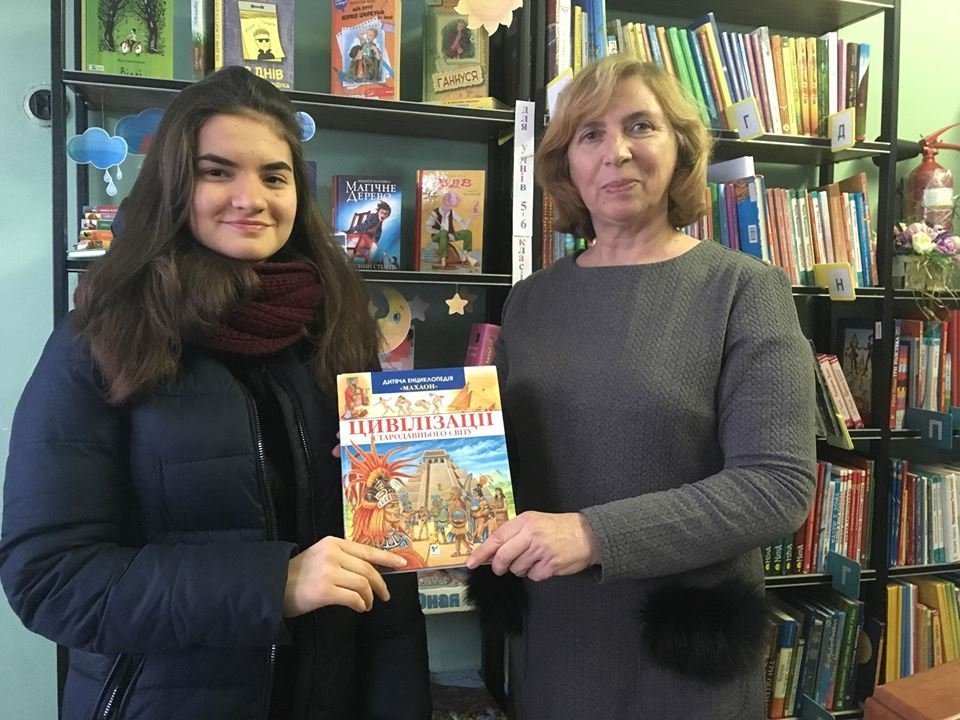 Гостинці від бібліотеки вже отримали дві кременчужанки. 20-та читачка Вікторія Наняк отримала у подарунок дитячу енциклопедію «Цивлізації стародавнього світу».