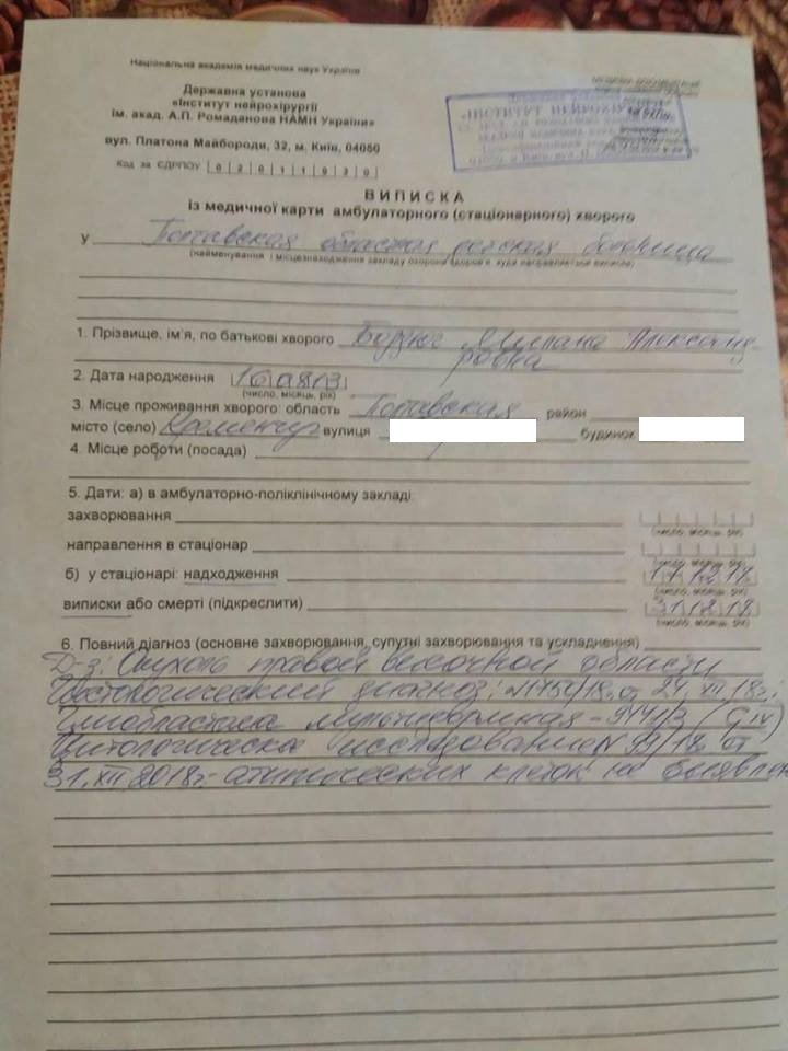 Не дивлячись на зроблену операцію, прогнози лікарів не оптимістичні.