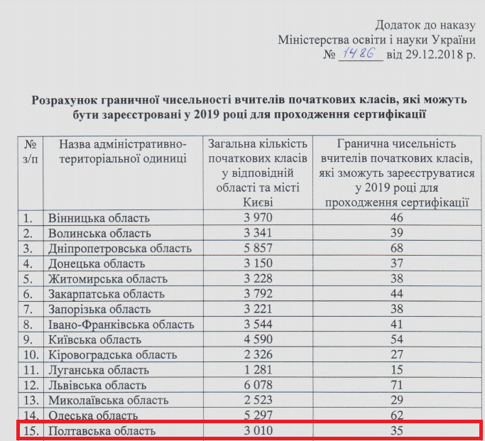 Відповідно до наказу МОН, з Полтавської області зареєструватися на сертифікацію можуть лише 35 вчителів.