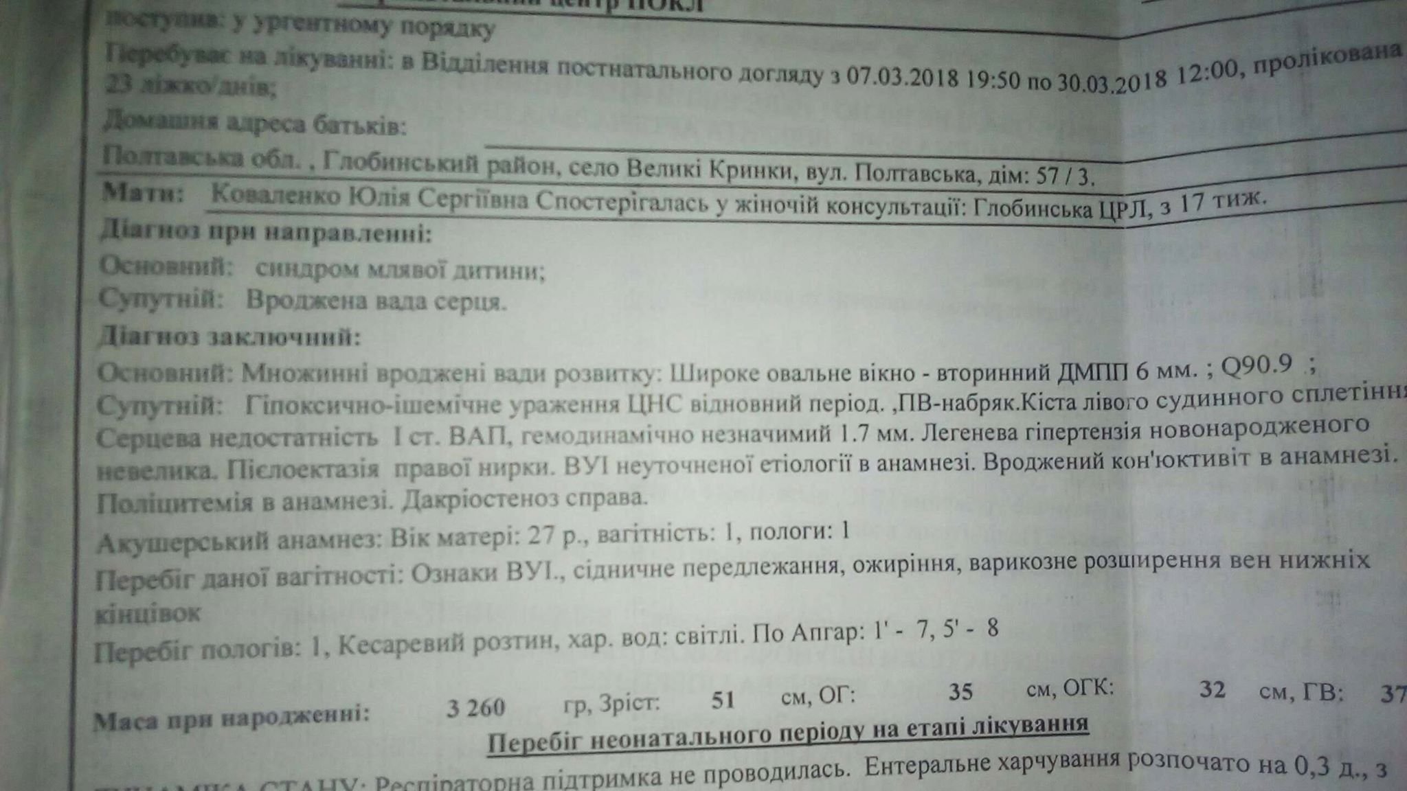 10-місячна Іринка Коваленко потребує коштів на лікування. В дівчинки з самого народження вади розвитку, вона потребує дороговартісного лікування. Основний діагноз в Іринки синдром млявої дитини, супутній – вада серця. На даний момент дитина знаходиться на обліку Полтавській обласній дитячій лікарні. Всі хвороби було виявлено після народження дитини. Для першого курсу лікування потрібно не менше 20 тисяч гривень.