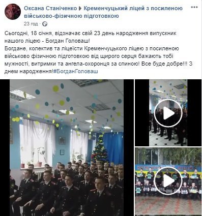 У Кременчуцькому військовому ліцеї вихованці на День народження колишнього випускника та військовополоненого Богдана Головаша провели флешмоб «Повертайся живим».