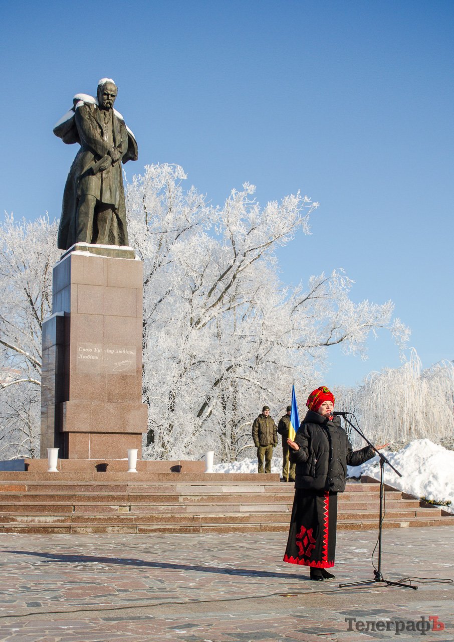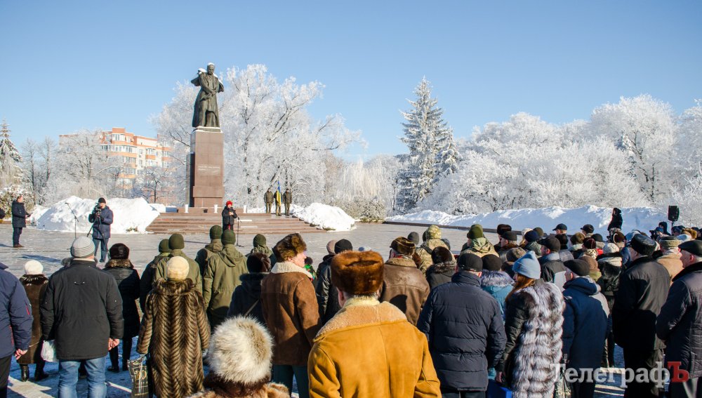 У День Соборності України кременчуцька громада на чолі з міським головою Віталієм Малецьким зібралася біля пам'ятника Тарасу Шевченку.
