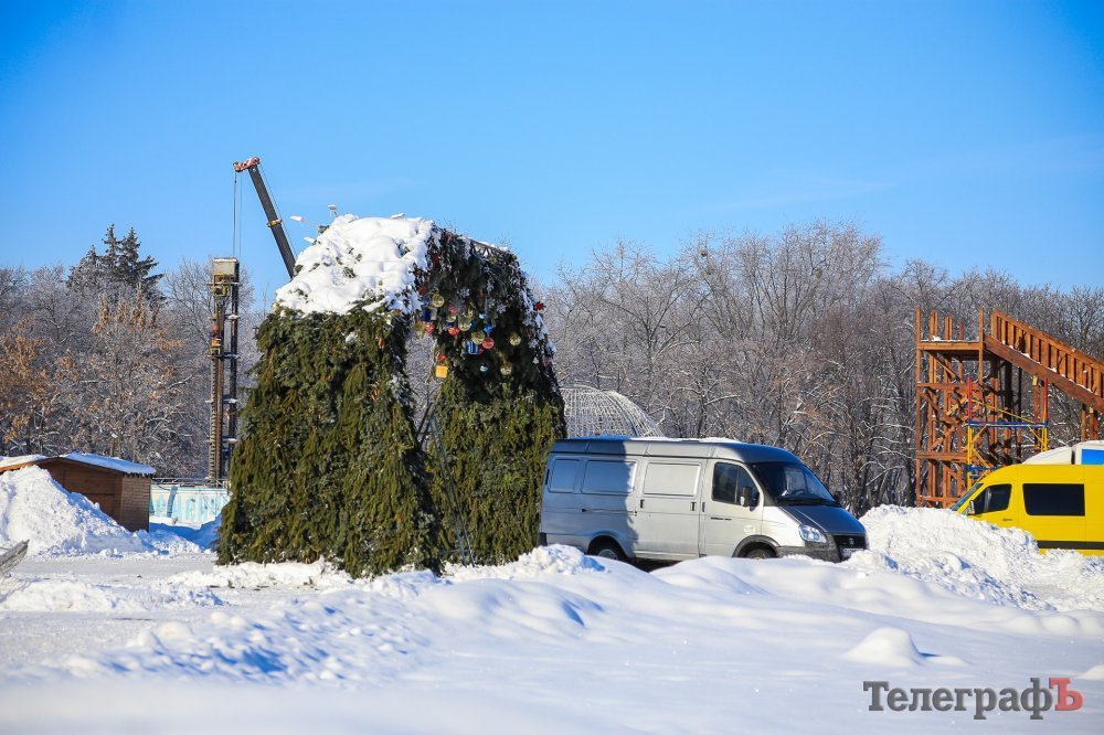 Работы ведет КП «Благоустройство Кременчуга». У них искусственная красавица будет храниться до следующего Нового года.