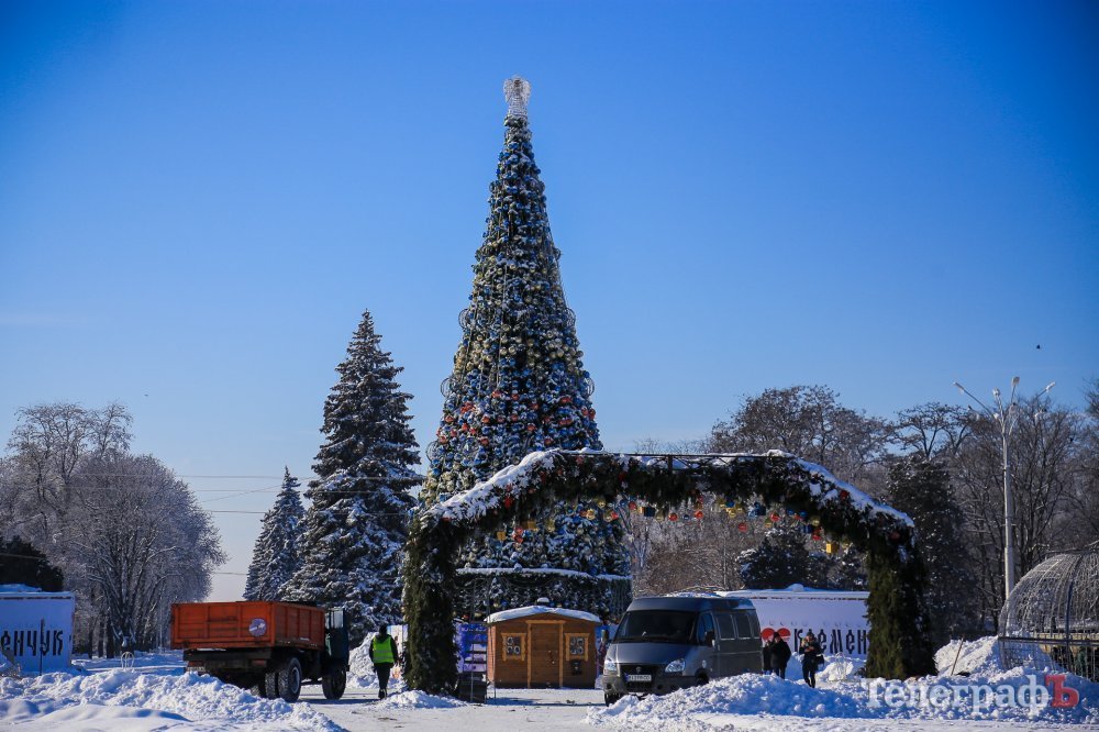 Пока что снимают украшения с арки, но скоро дело дойдёт и до ёлочки.
