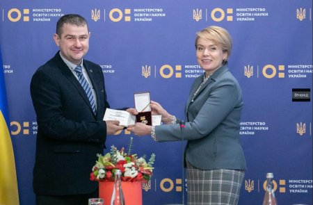 Министр образования Лилия Гриневич вручает Госпремию Николаю Высоколяну