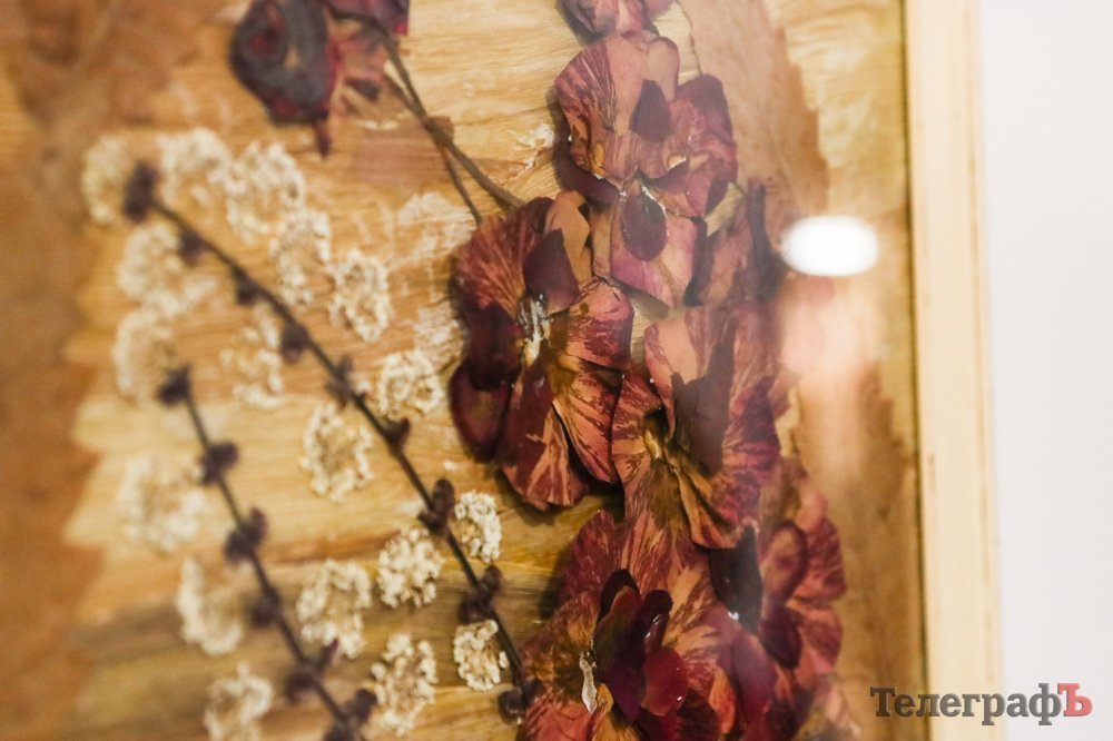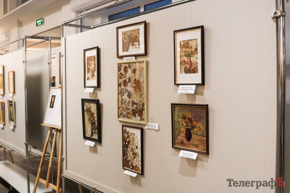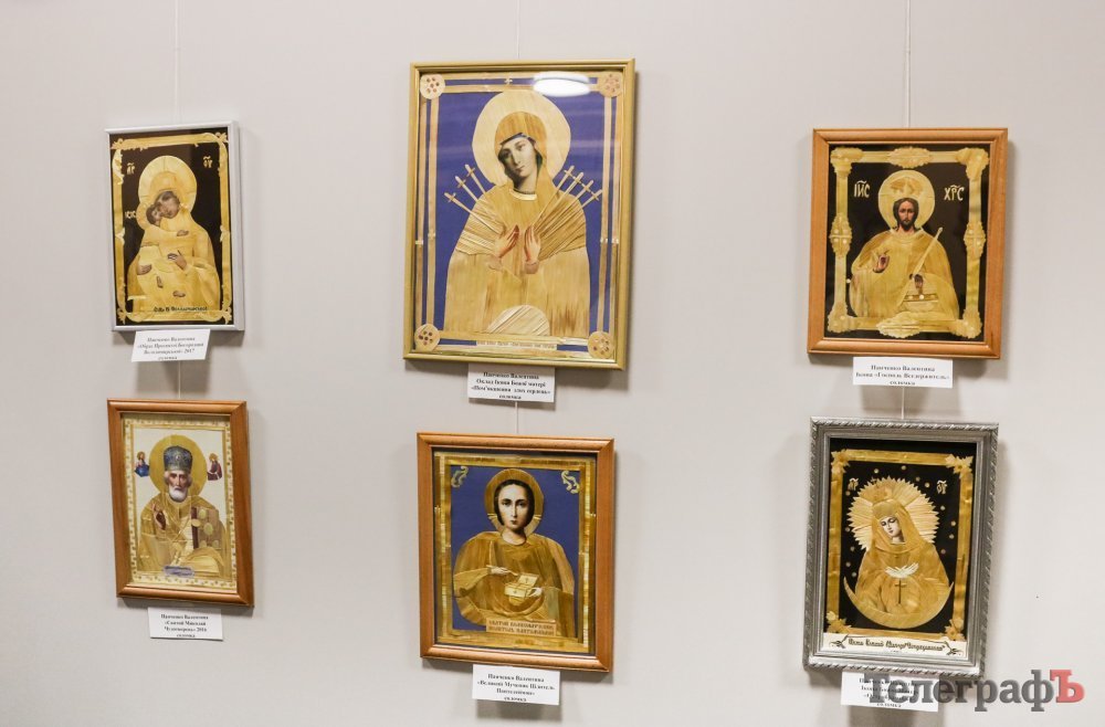 Своей выставке Валентина дала название «Побачити суть». Сюда входят работы соломкой и естественными материалами: иконы, натюрморты с фотографиями её близких. На счету валентины 15 икон из соломки. Её работы нашли своё место на обеих боках трёх больших стендов и на стенах между окнами.