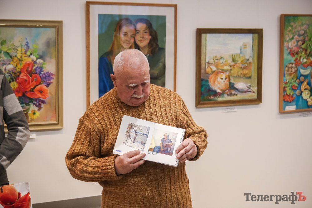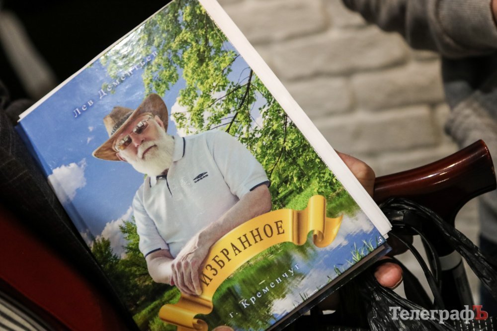 Также на выставке удалось пообщаться с поэтом Львом Дементьевым. Он попросил журналиста «Телеграфа» с эмоциями прочитать его стих про Кременчуг, с чем тот, по меркам фотографа, справился средне. И поэт показал нам книгу, которую, по его словам, видели единицы. Она называется «Избранное». Как знать, может и фантастика, а может и автобиография.