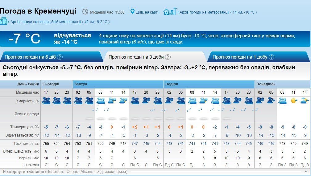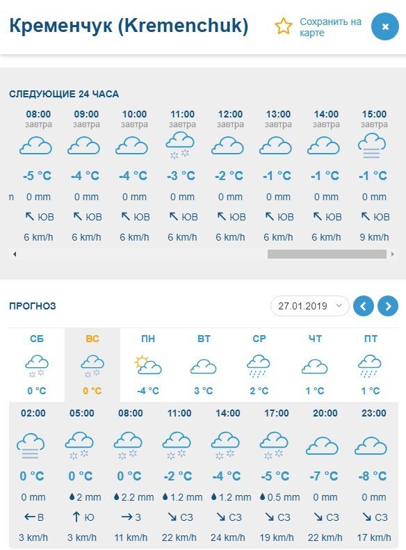 По прогнозу rp5, весь викенд Кременчуг будет окутан дымкой, а снег будет сменятся дождём и даже ливнем. Ожидаемая температура воздуха -7°С…+2°С.