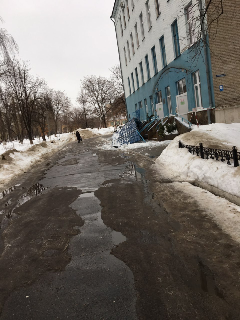 Предположительно козырек упал из-за большого количества снега.