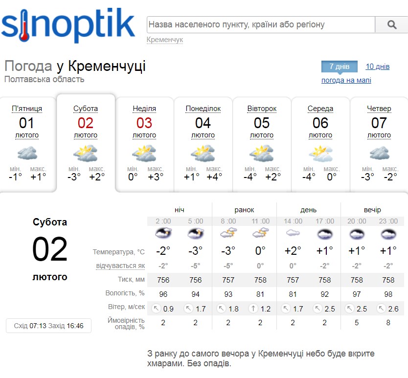 Sinoptik прогнозує, що і у суботу, 2 січня, і у неділю, 3-го січня, небо буде щільно затягнуте хмарами. Погода буде сухою, а температура повітря коливатиметься від -3°С до +3°С.