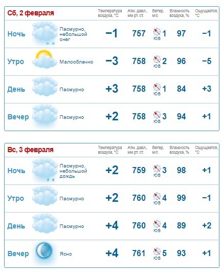 Gismeteo обіцяє невеликий сніг ранком суботи, 2 січня, та дощ недільним ранком, 3 січня. Вдень обидвох днів буде хмарно, але сухо. Стовпчики термометрів досягнуть позначки +4°С.