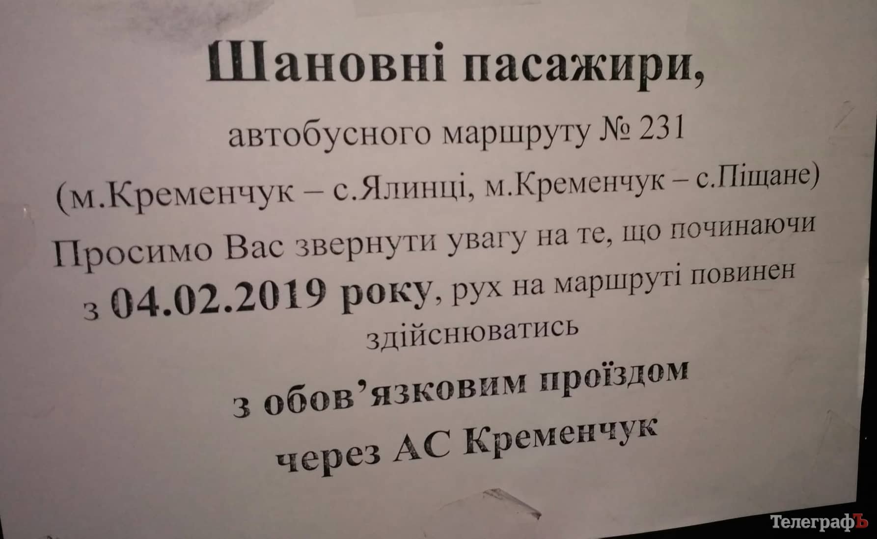 – Просимо Вас звернути увагу на те, що починаючи з 4.02.2019 року, рух на маршруті повинен здійснюватись з обов’язковим проїздом через АС Кременчук, – йдеться у повідомленні.