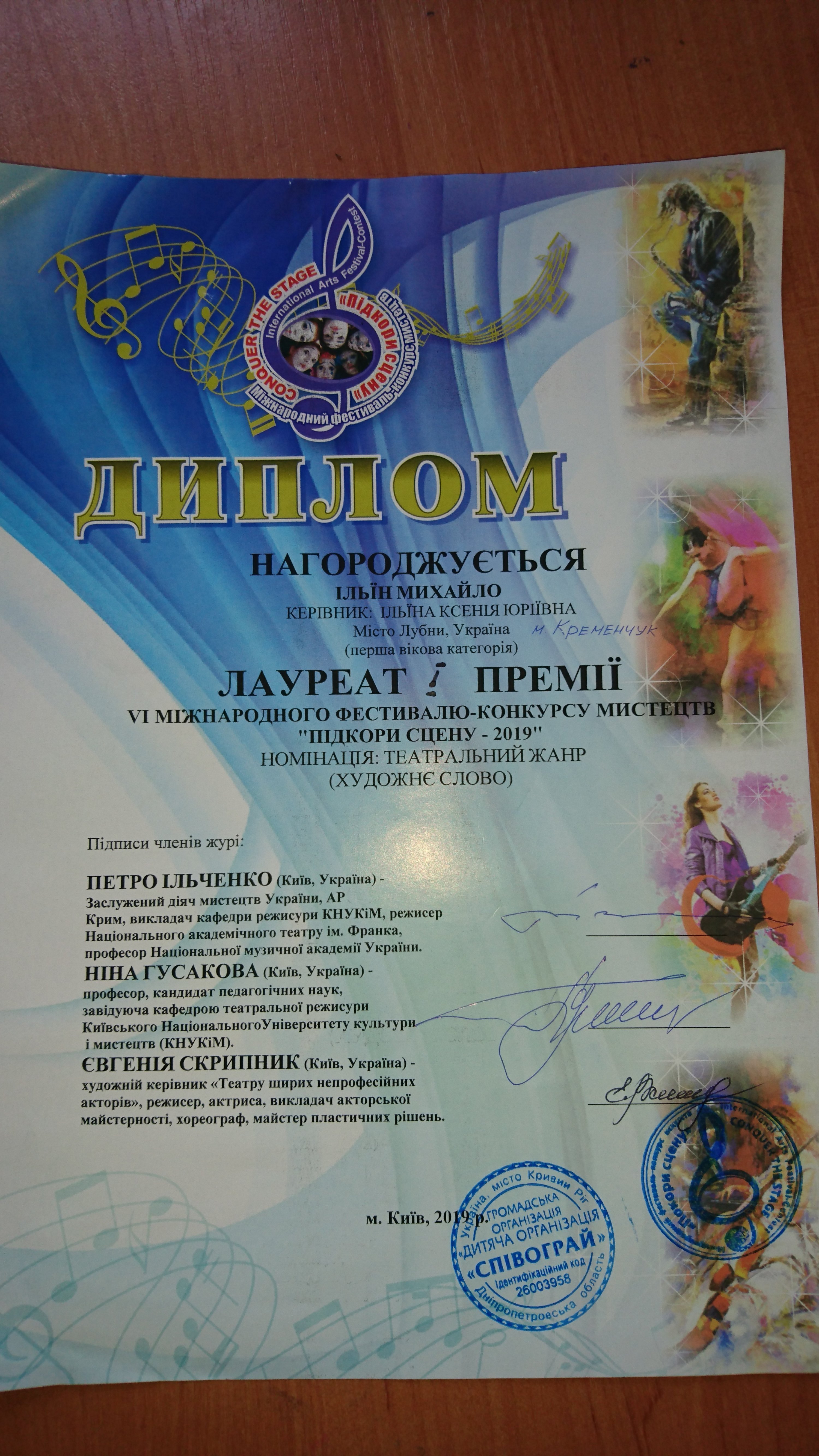 Ученик 1-А класса лицея №4 занял 1 место на международном конкурсе «Покори Сцену 2019», который прошёл 1-2 февраля в Киеве. Миша выступил на гала-концерте, как представитель театрального жанра.