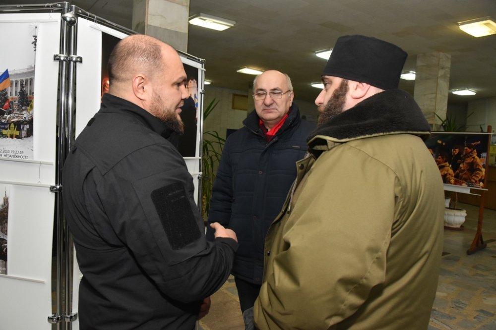 Близько півсотні світлин презентували організатори: голова ГО «Добровольці України» Юрій Крамаренко та учасник Революції гідності Іван Балацький.