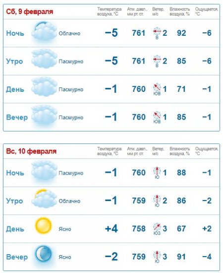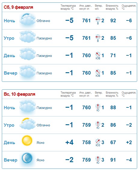 По прогнозу Rp5, вся суббота, 9 февраля, пройдет без осадков, а воскресенье, 10 февраля, утром пойдёт снег, который к обеду превратится в дождь и не закончится к ночи. Город будет окутан туманом.