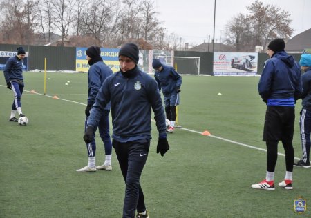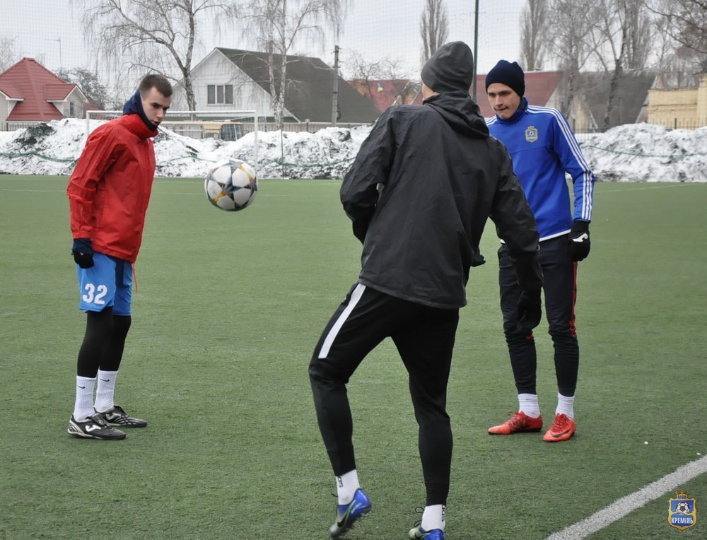 Серед гравців також тренується півзахисник "Кременя" Дмитро Ентін, який восени покинув команду після останньої гри