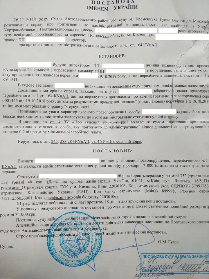 Згідно з рішенням суду Автозаводського району керівника автотраспортного підприємства притягнули до адміністративної відповідальності по ст.164 КУпАП. На нього наклали штраф у розмірі 17 000 грн.