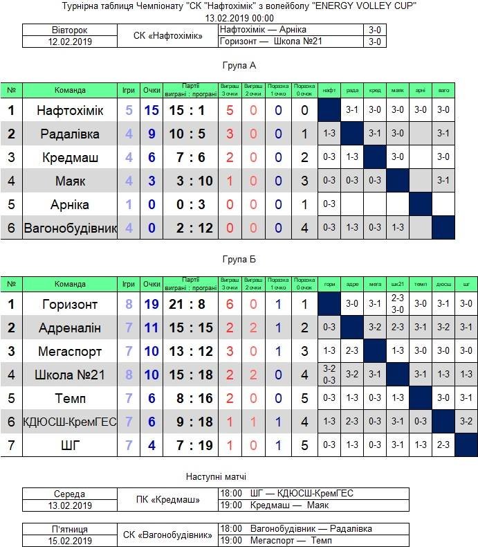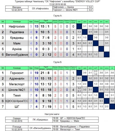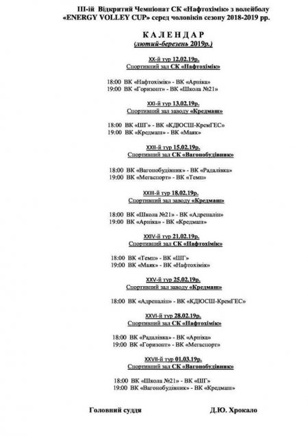 Вчора, 12 лютого, волейболісти розпочали друге коло чемпіонату СК «Нафтохімік» з волейболу серед чоловіків сезону 2018-2019. Якщо минулі два роки чемпіонат проходив за участі 10 команд, які грали в одне коло, то цього року команди поділили на дві групи по 5 та 8 команд. Після першого кола у лігу «А» перейшов новачок чемпіонату - глобинська «Арніка».