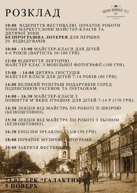 23 лютого у Кременчуці майстри зберуться на перший Kremen Handmade Fest, який проходитиме з 10.00 у ТРК «Галактика».