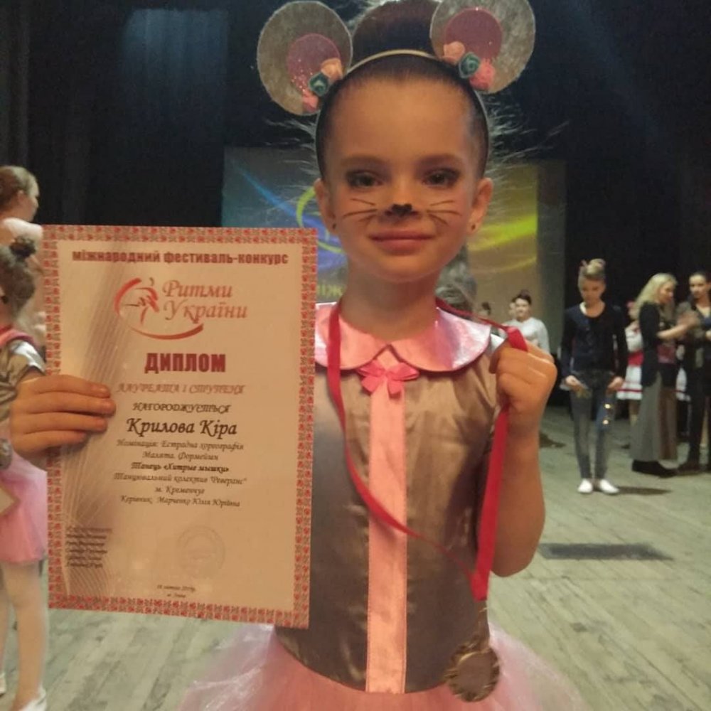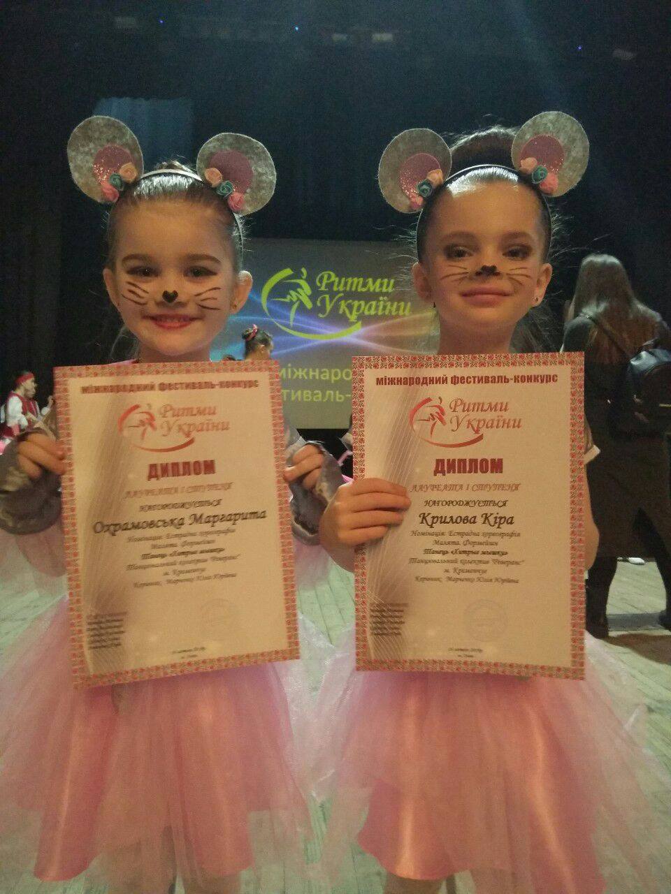 Танцевальный коллектив «Реверанс» получил диплом Лауреата I степени Международного фестиваля-конкурса «Ритм Украины» в номинации «Эстрадная хореография» за номер «Хитрые мышки».