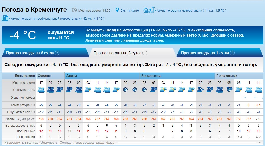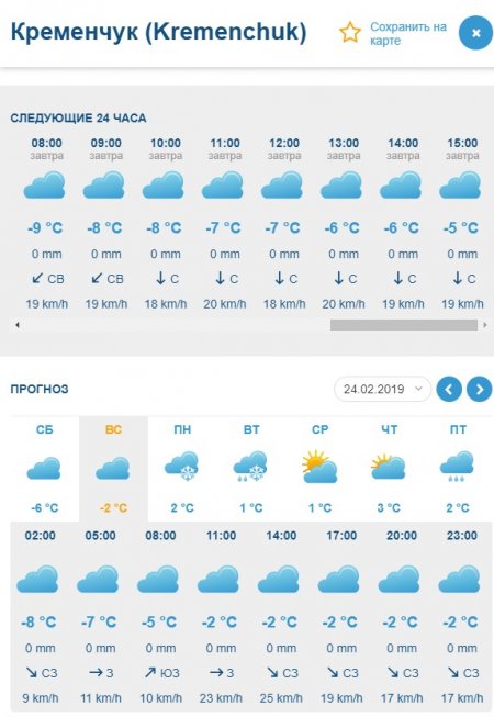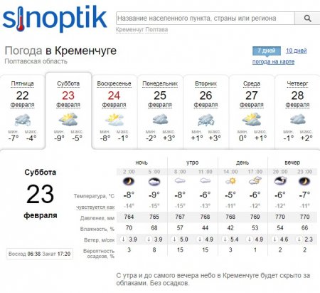 Sinoptik тоже сулит мрачную, но сухую погоду и мороз до -9°С.