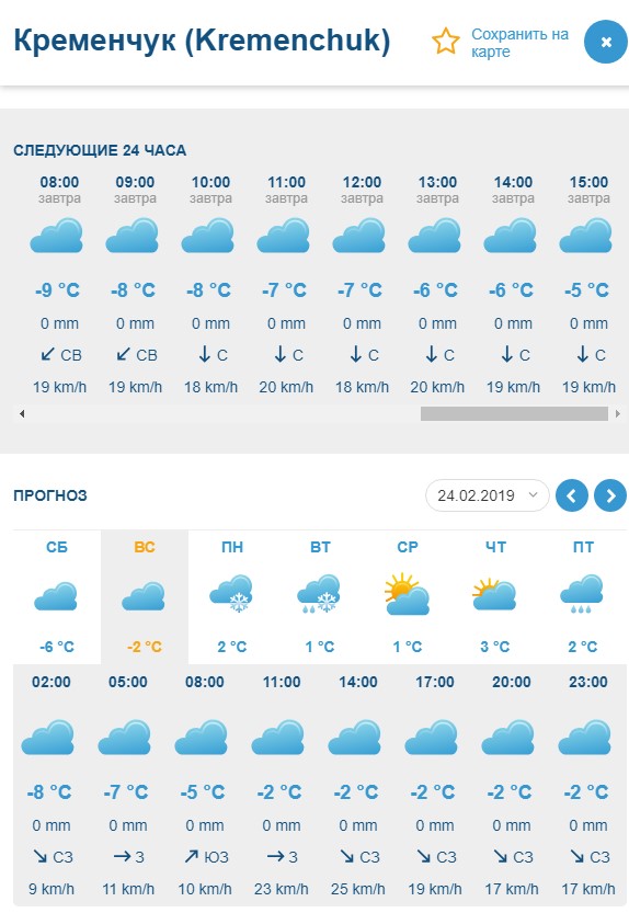 Rp5 температуры ниже -8°С не прогнозирует, зато предупреждает об усилении порывов ветра до 12 м/с до конца недели.