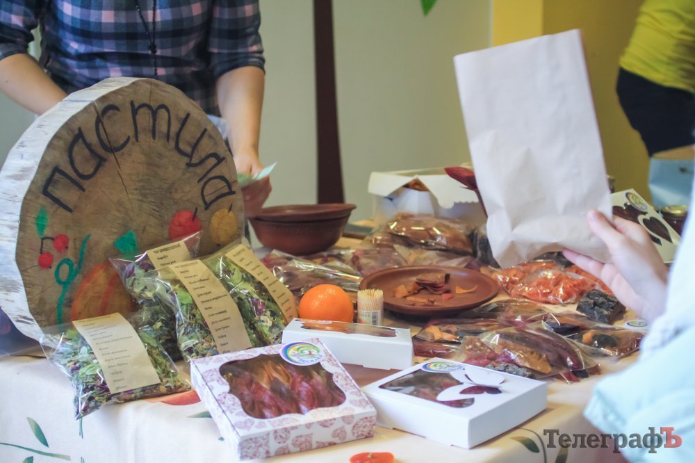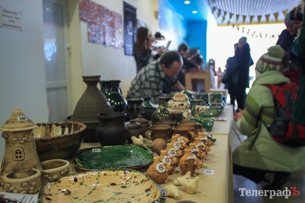 Вот такой формат не вместил все наши идеи. Мы здесь хотели поставить уличного музыканта, с шапкой для денег — для атмосферы; но почему-то все, кому мы предлагали, отказывались – говорит Андрей, и дополняет Вика: «Зато вместо уличного музыканта позже придёт художник и будет делать зарисовки». Именно Виктория взяла на себя ответственность за изделия мастеров не из Кременчуга: «Я договаривалась со всеми людьми. Откликнулось около десятка мастеров из крупных городов. Тяжело не было — мастера открыты к тому, чтобы открывать для себя новые города. Просто у нас в Кременчуге нет шоурума, как в больших городах, где представлены мастера со всей Украины. По-этому, когда производители узнали, что мы собираем для нашего фестиваля такую подборку, то они с удовольствием прислали нам свои изделия, к тому же некоторые мастера прислали изделий больше чем на 10 тыс грн. Это и косметика ручной работы, и дизайнерские украшения, и чаи и ещё много чего».