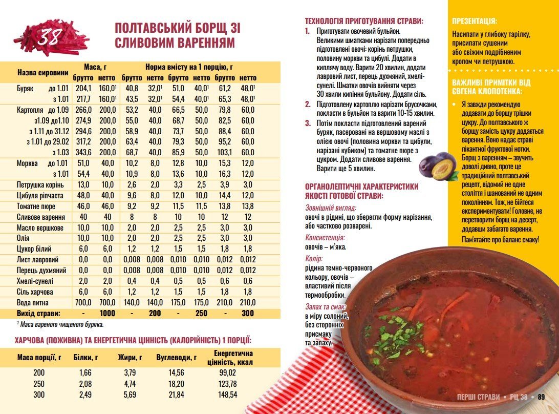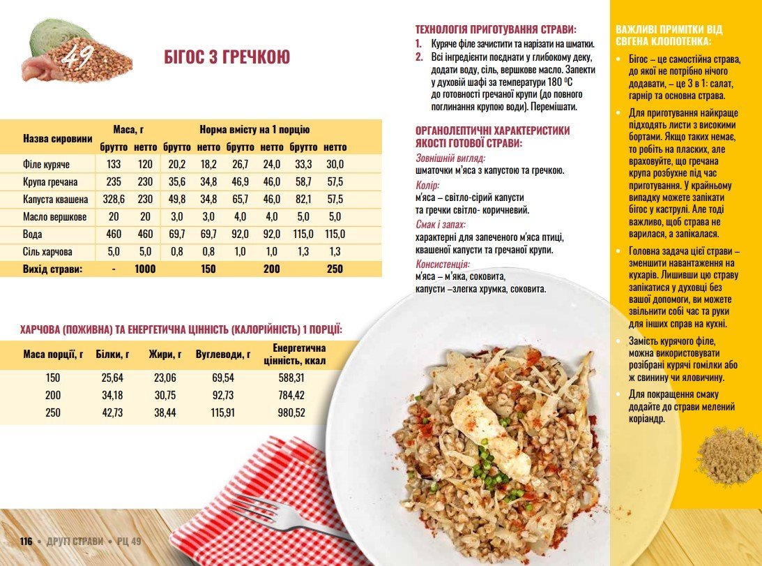 Для кожного, хто буде готувати за збірником, в ньому є примітки від Євгена, інформація про те, що це за страви з дивною назвою та поради, як зробити їжу смачнішою, красивішою та такою, щоб вона готувалася швидше та легше. розробники переконані, що ціна на шкільні обіди не зросте, а страви за технікою виконання не складніші за старі.