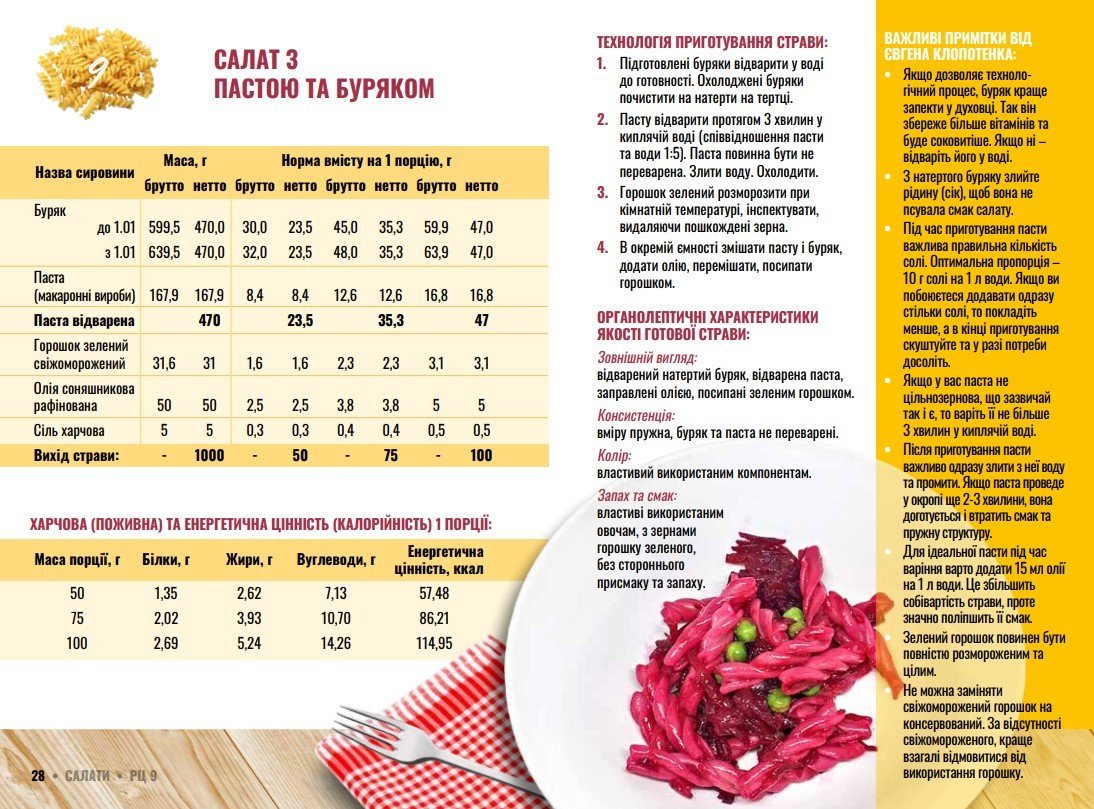 23 лютого на сайті проекту Cult Food з’явилась повна версія рецептурного збірника для шкільних їдалень, розробленого переможецем «МайстерШефа» Євгеном Клопотенком.