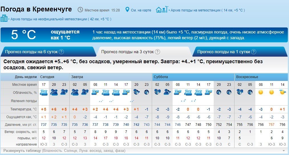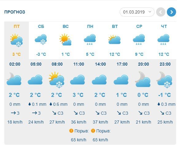 Rp5 предупреждает о порывах ветра до 19 м/с и небольшом дожде.