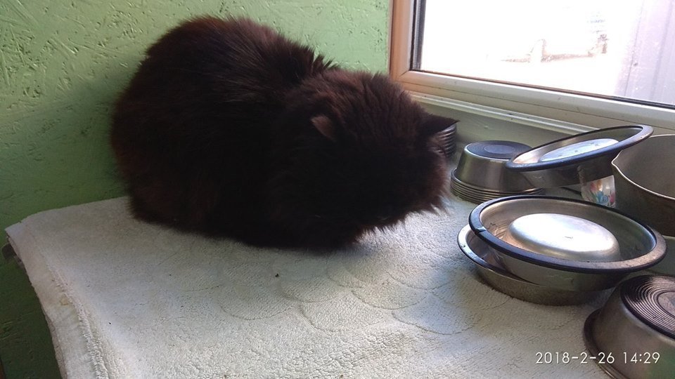 У Кременчуці чорний пухнастик без очей шукає господарів або нову родину, яка б піклувалася про нього. За словами начальника служби відлову та утримання Марини Кожушко, кіт потрапив у «Спецсервіс» 23 лютого минулого року, коли його небайдужі жінки знайшли у парку Миру.