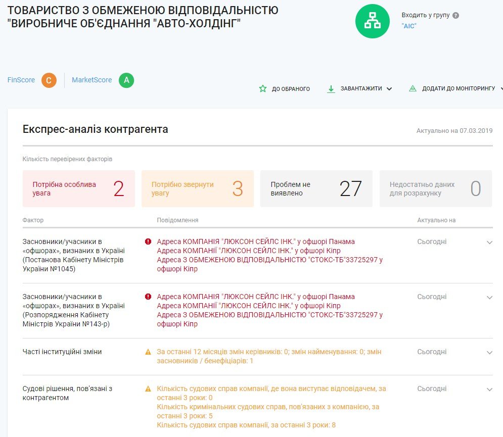 ТОВ «ВО «Авто-Холдінг» має серед засновників офшорні компанії, зареєстровані на Кіпрі та в Панамі.