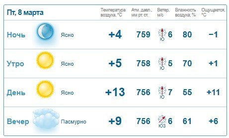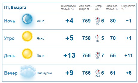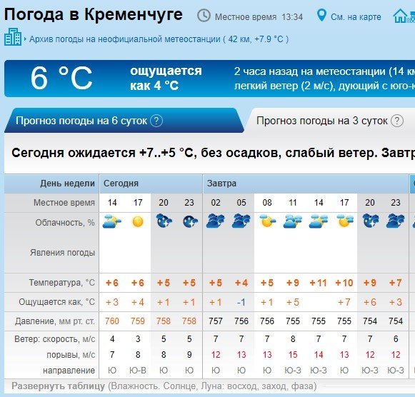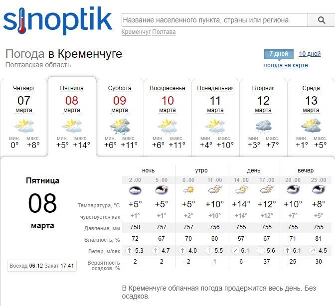 А от Gismeteo обіцяє кременчужанам ясний та сонячний день з температурнім максимумом в +13°С.