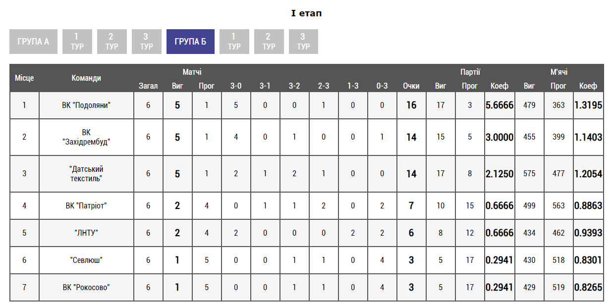 Таким чином, «Подоляни» прокрокували до «Фіналу чотирьох» із першого місця в групі, а ось у суперництві за друге «рембудівців» і «текстильників», за рівної кількості перемог та очок (відповідно, по 5 та 14), на користь перших зіграла трохи краща різниця у партіях – 15/5 проти 17/8.
