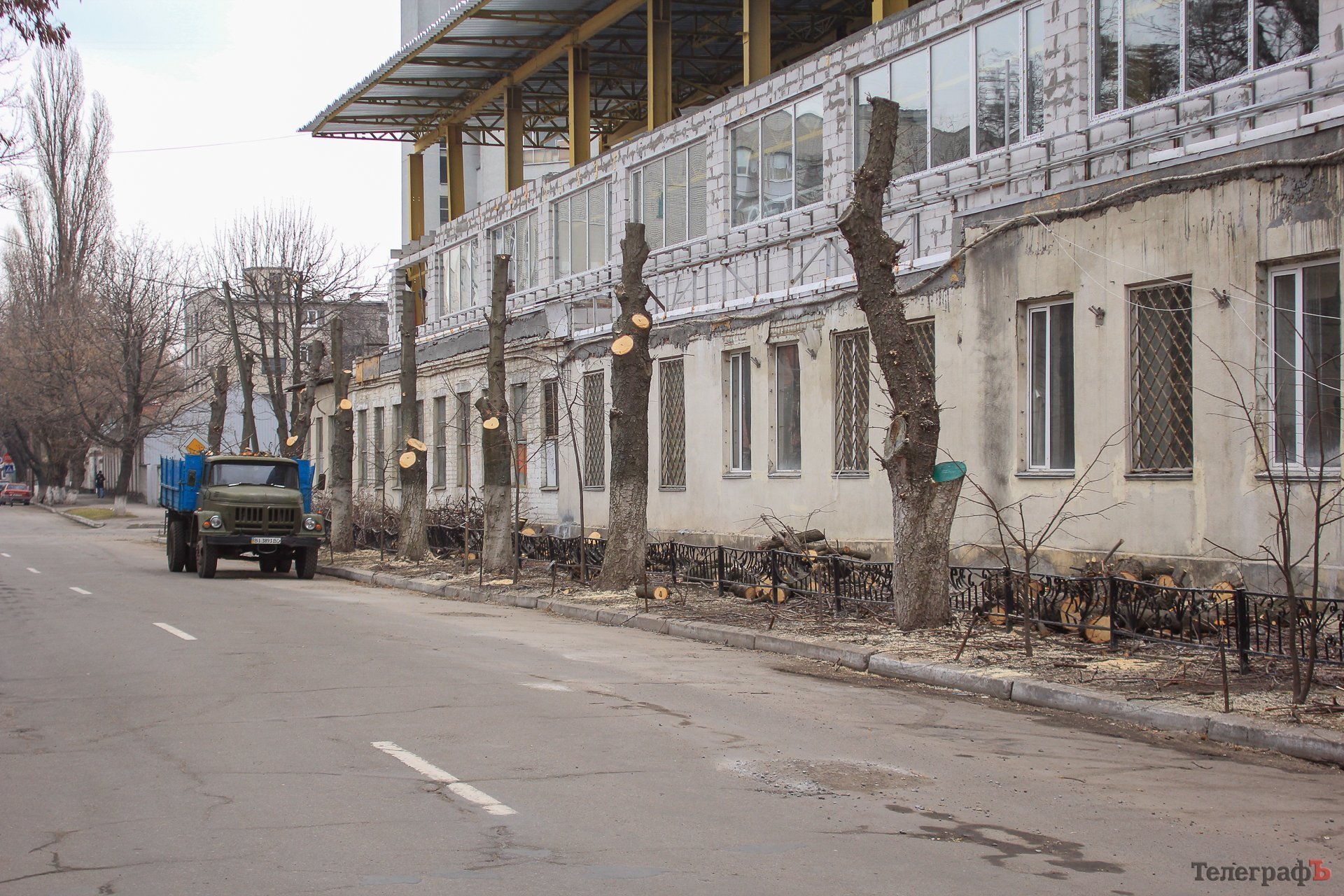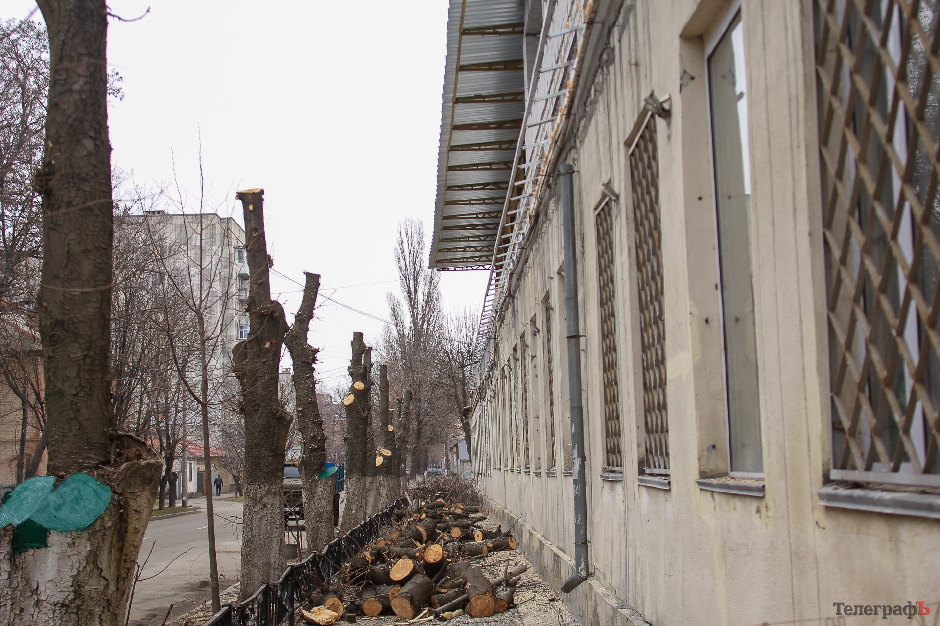все. От них остались лишь голые стволы. По состоянию на 14 марта обрезано было лишь правое крыло посадок, выходящих на перекресток улиц Коцюбинского и Троицкой.