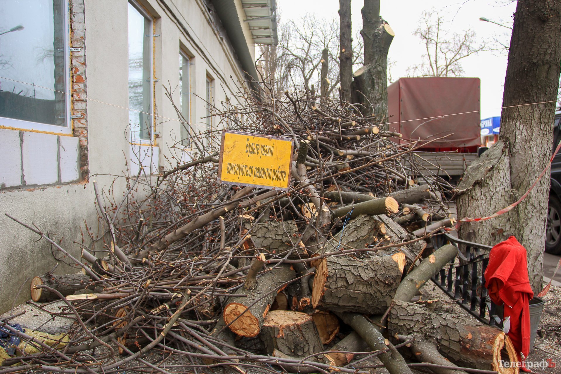 Сегодня, 15-го марта, журналисты «Телеграфа» и «Кременчугской газеты» вызвали полицию на место вырубки (или критически низкой обрезки) городских каштанов на улице Троицкой, возле проходной завода «Ампер».