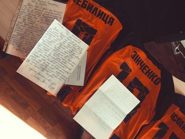 Воротар збірної та «Шахтаря» Андрій П’ятов написав лист підтримки військовополоненим морякам. Моряки Богдан Небилиця, В’ячеслав Зінченко та Володимир Лісовий отримали не тільки слова підтримки, а й футболки зі своїми іменами.
