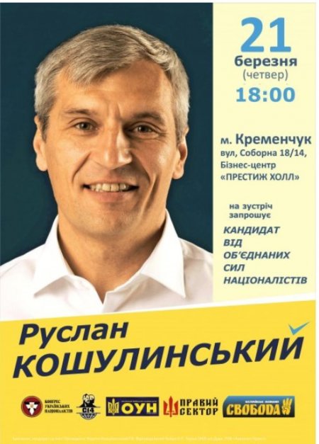 Сьогоднішня зустріч кременчужан із кандидатом у президенти Русланом Кошулинським (“ВО “Свобода”) скасована.