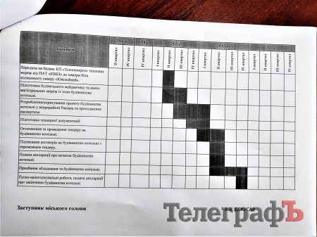Також члени робочої групи проголосували за виключення з графіку будівництва пункт щодо передачі на баланс КП «Теплоенерго» теплових мереж від ПАТ «КВБЗ» біля колишнього скверу «Ювілейний». Як пояснив керівник КП «Теплоенерго» Віталій Одношевний, це може збільшити терміни реалізації всього проекту.