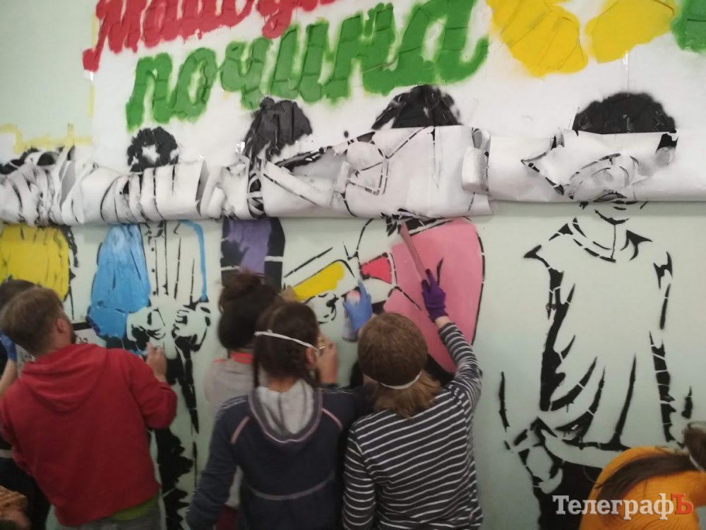 У четвер, 28-го березня, учні та вчителі кременчуцького ліцею №25 під керівництвом блогера та художника-концептуаліста Сергія Брильова закінчили роботу над графіті, яка розпочалася ще в суботу, 23-го березня. Вирішили розмалювати стіну вчительської на другому поверсі. На графіті – учні школи. Всього колектив збирався три рази: в суботу, понеділок та четвер. Перші два рази вирізали трафарети, на третій залишили найцікавіше – розпис стіни. Загалом на проект витратили 25 годин, лише на розмальовку – 10 годин.