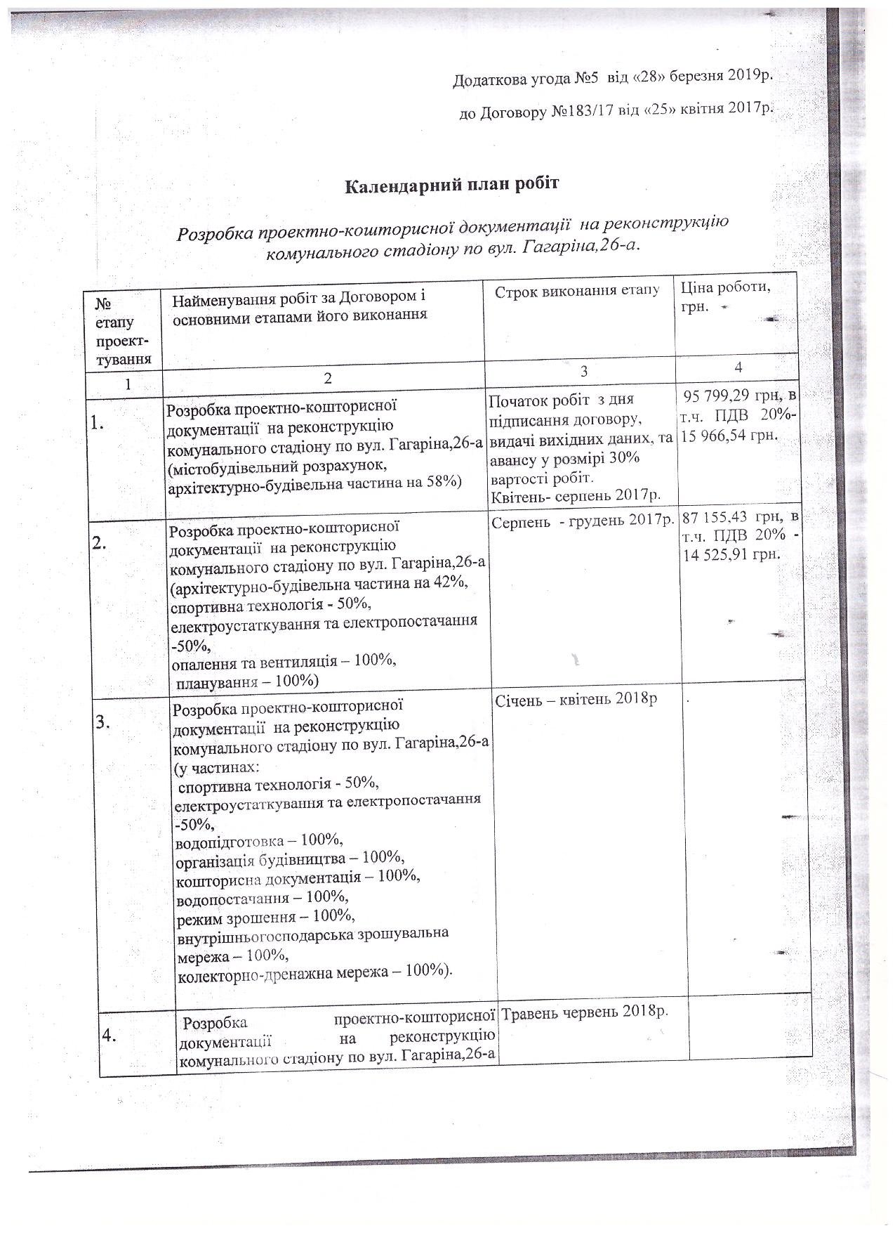 Нагадаємо, що видача замовнику (МФК «Кремінь») у друкованому та електронному вигляді проектно-кошторисної документації у повному обсязі, а також супровід проектно-кошторисної документації до отримання позитивного експертного звіту була запланована на 29 березня 2019 року.