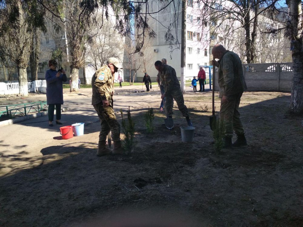 Запрошені бійці на згадку про себе посадили на території школи три дерева.