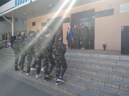 Деякі учні школи були одягнуті у військову форму. Вони тримали прапор України і клали квіти під меморіальні дошки загиблих бійців. Стоячи біля мікрофона, Ігор нагадав школярам, що вони — майбутнє України, і що від них залежить, якою вона буде у майбутньому.