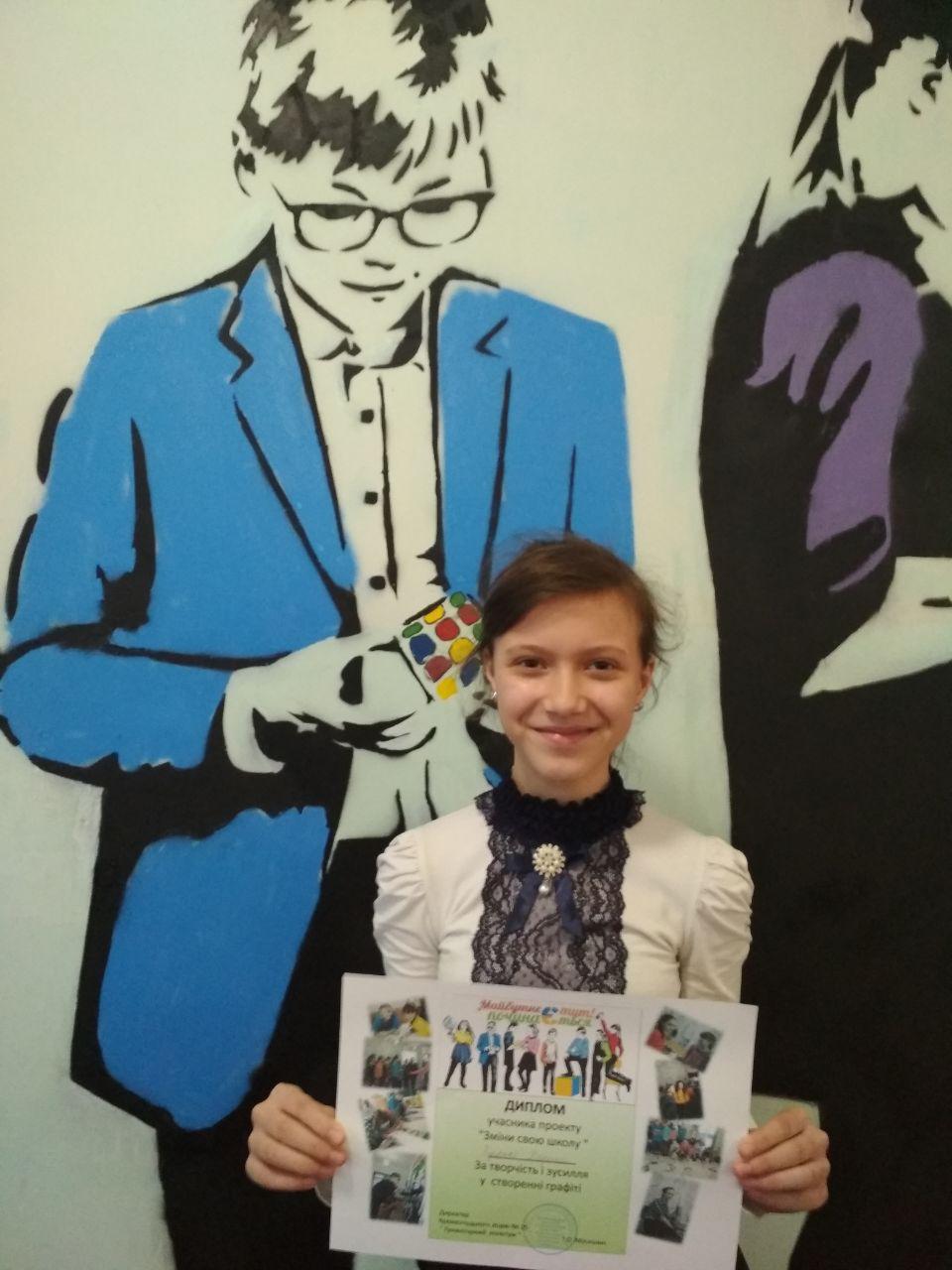 Здавалося, б, нонсенс: школярі малювали балончиком в школі, а їх за це похвалили. Справа в тому, що на весняних канікулах вони під керівництвом художника і блогера Сергія Брильова взяли участь у проекті «Майбутнє починається тут». Вони вирізали трафарети і наносили фарбу на стіну, це багато годин кропіткої праці. Кінцевий результат — графіті, на якому намальовані учні самої школи. Сергій каже, що це може стати прикладом для інших навчальних закладів.