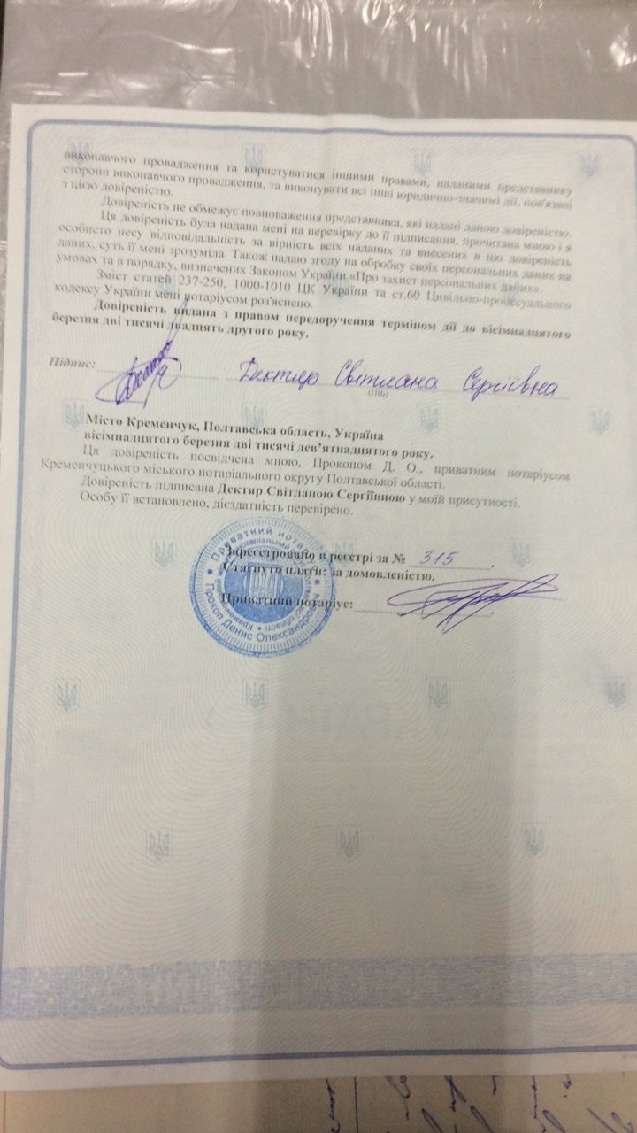 А это подпись Светланы Дектярь в нотариальной доверенности, выданной в 2019-м году: