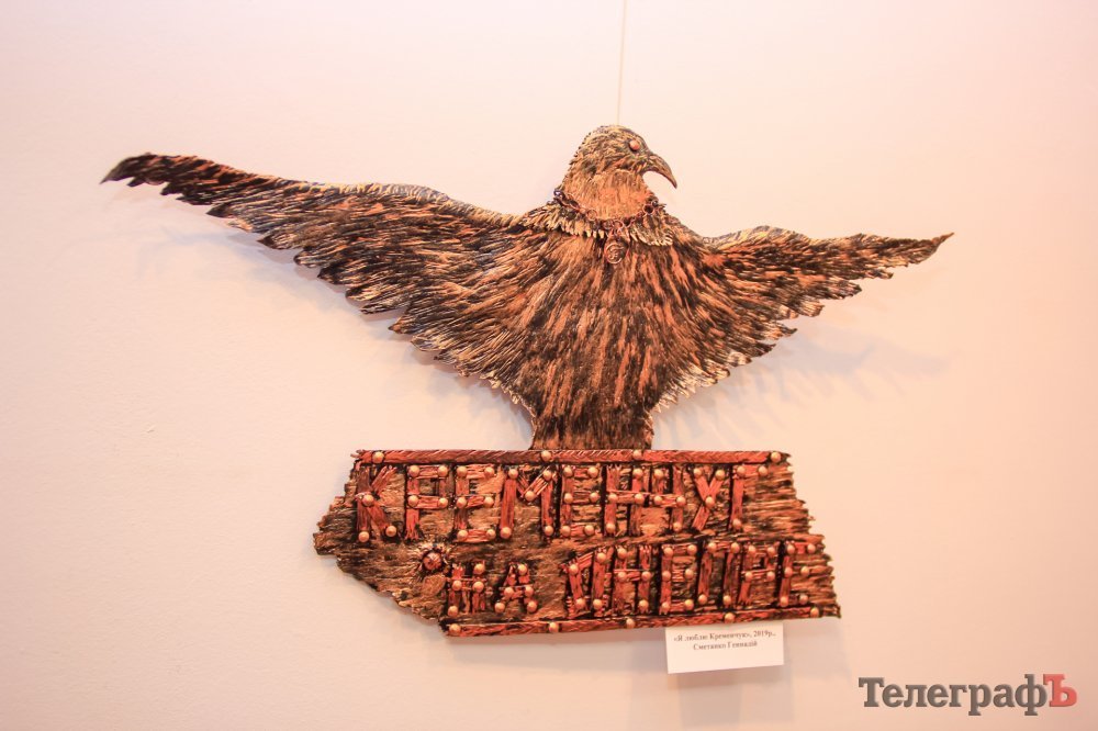 На виставці були як старі, так і нові роботи майстра. Та особливу увагу коваль приділив своєму новому витвору, що вміщує в собі поняття любові, філософії та історії. Надихнула творця бувальщина про орла. Орел – дуже могутній птах, що стрімголов борознить висоти і не боїться, здавалося, нічого і нікого. Та є в нього ворог – Ворон. Недруг нападає на слабке місце Орла під час польоту: його потилицю і клює її. Орел, аби позбутись нападника летить у саму височінь, де розріджене повітря, ризикуючи своїм життям, чекає поки Ворон відчепиться без сил і спротиву. Це надихнуло Геннадія створити щось сильне з глибоким сенсом і потужним зарядом волі та впевненості в собі і своїх силах. Орел тримає в лапах уламок від корабля з назвою «Кременчук на Дніпрі». А на шиї у птаха в знак щирого та справжнього кохання висить медальйон у формі серця з ініціалами коваля. Композиція притягує погляд одразу. Адже вирізняється на фоні улюбленої тематики творця – троянд.