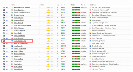 Нагадаємо, що перед боєм з поляком Адамом Бальскі Сергій посідав 103 позицію, проте поразка підняла його на 20 сходинок у світовому рейтингу.