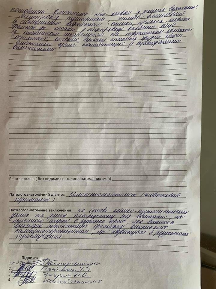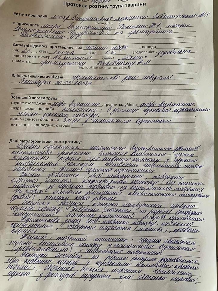 Заключення ветеренара після розтину лебедя Маші.