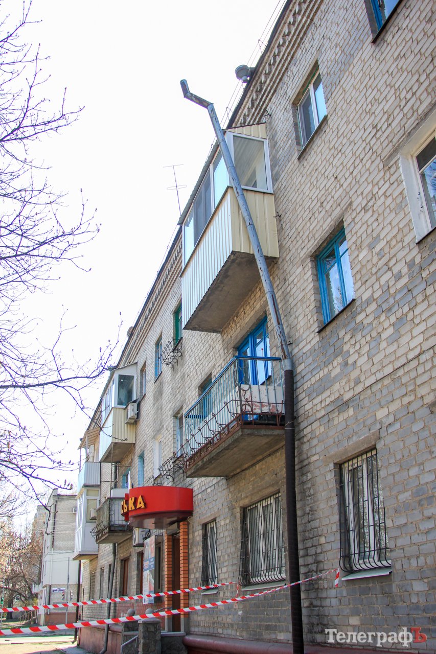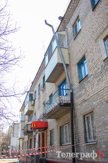 В Кременчуге возле дома №41/49 по улице Шевченка создалась аварийная ситуация - верхнее крепление водосточной трубы оторвалось от конструкции. Теперь труба свисает над тротуаром.