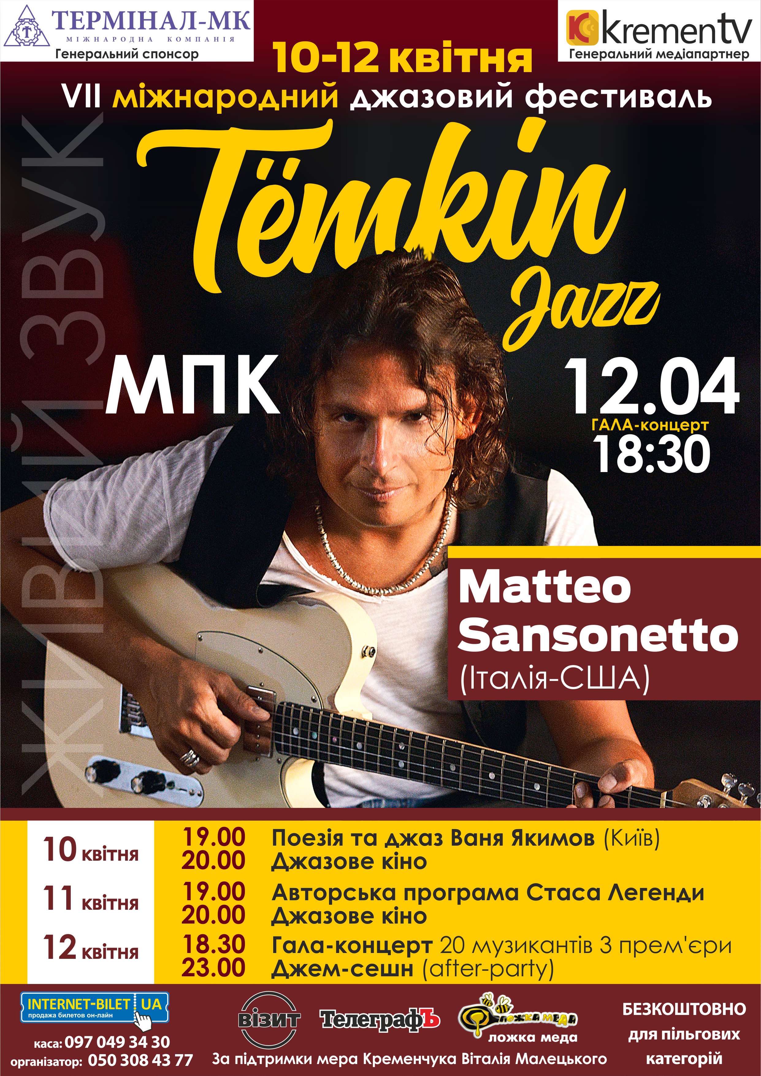 Харизматичный вокалист и шоумен, а также, без сомнения, выдающийся гитарист, Маттео Сансонетто представит в Кременчуге свою авторскую программу вместе с лучшими украинскими блюзменами.